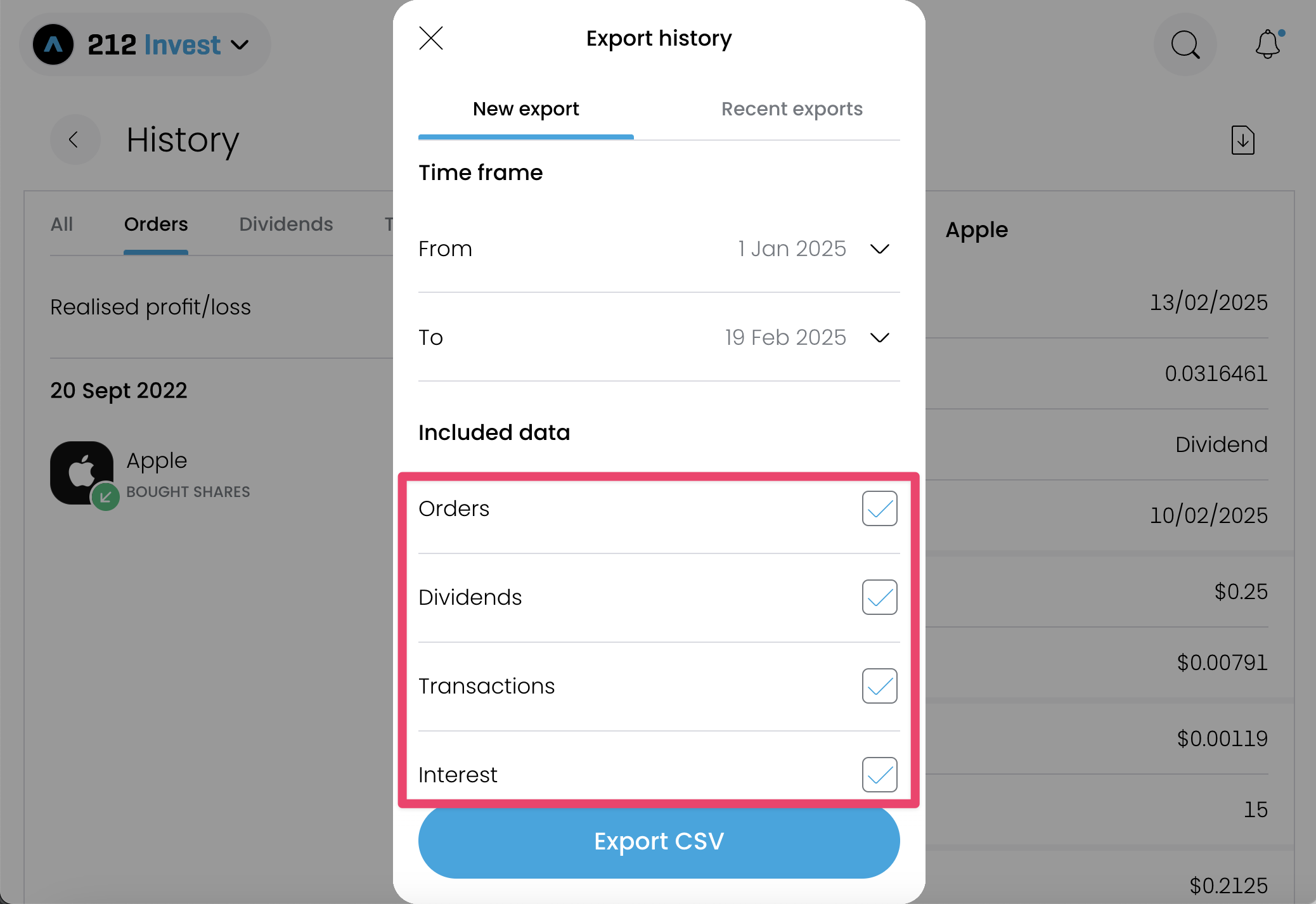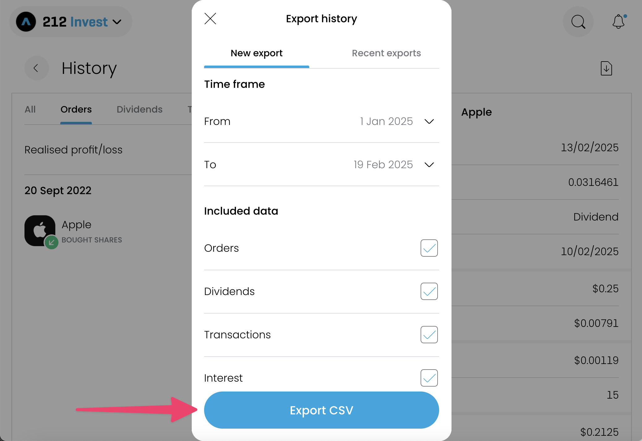 How to export your trades from Trading 212