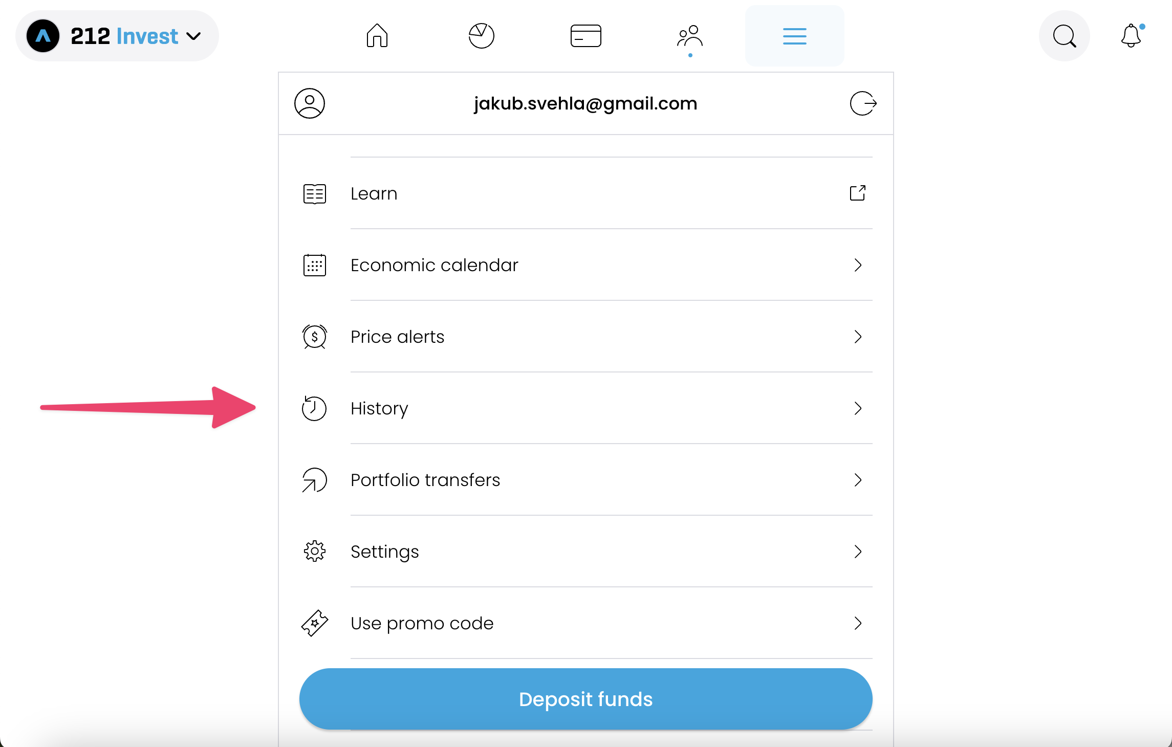 To export your trades from Trading 212: